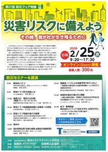 第21回 防災フェアが 2026年2月25日(水)9:20~17:30 に開催されます。
